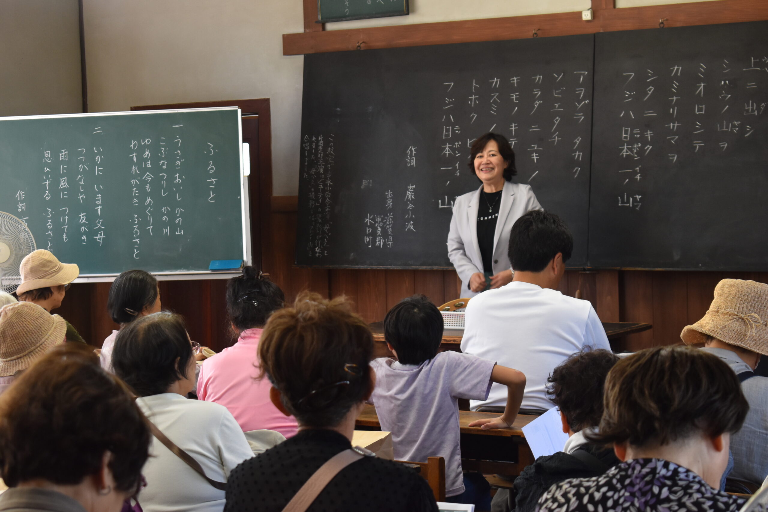 午後には飯田市の杵原学校に。もともとは山本中学校として建設されましたが、廃校となった今は杵原学校として歴史ある木造校舎が残されています。映画「母べえ」のロケ地にもなった校舎です。その教室を少しお借りして「ともみ会総会」を行い、久しぶりに教壇に立ちました。その後には、杵原学校スタッフの方による歴史と音楽の授業。起立・礼から始まり、「フジノ山」「故郷」をみんなで歌うなどの体験に胸を熱くしてみえる方もいらっしゃいました。その方は、戦争によって卒業式が無くなり、卒業証書をもらえなかったそうです。平和だからこそ学ぶことができ、みんなで歌うことができます。学べることの有難さをを今一度確認したいものです。春には素晴らしいしだれ桜が花咲くそうです。「また来たいね」と皆で口々に言い合って杵原学校を後にしました。